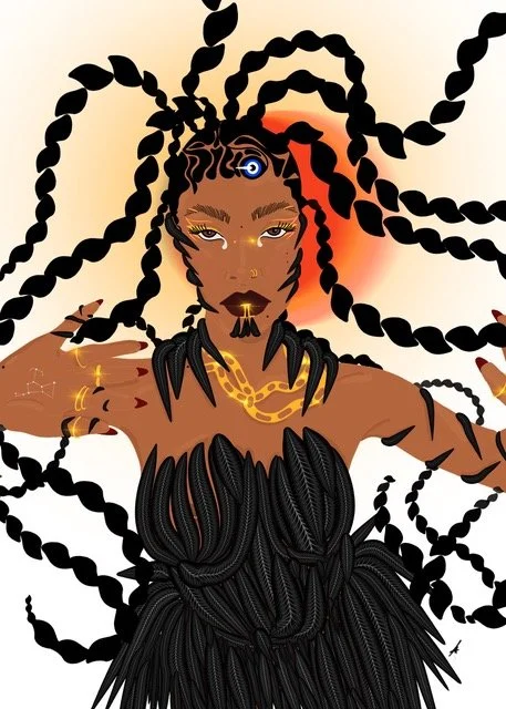 Eelise N’Dri is a bold, forward-thinking storyteller, illustrator, and multidisciplinary artist based in Montreal. Her work is witty, funky, and vibrantly colorful, drawing inspiration from diverse cultures and contemporary aesthetics. She is best recognized for her signature thick white stroke across one eye—an artistic mark symbolizing her unique way of seeing and interpreting the world, while intentionally leaving space for the viewer’s own perspective.